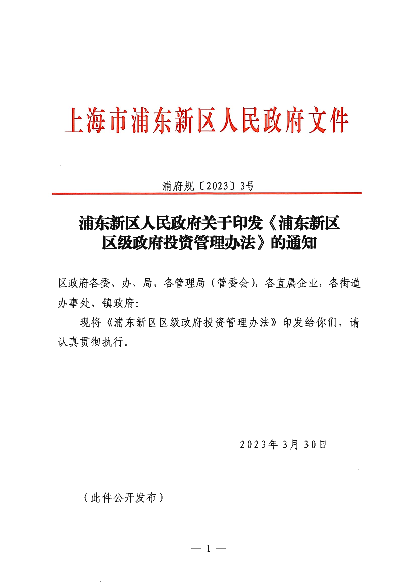 浦東新區(qū)人民政府關(guān)于印發(fā)《浦東新區(qū)區(qū)級政府投資管理辦法》的通知