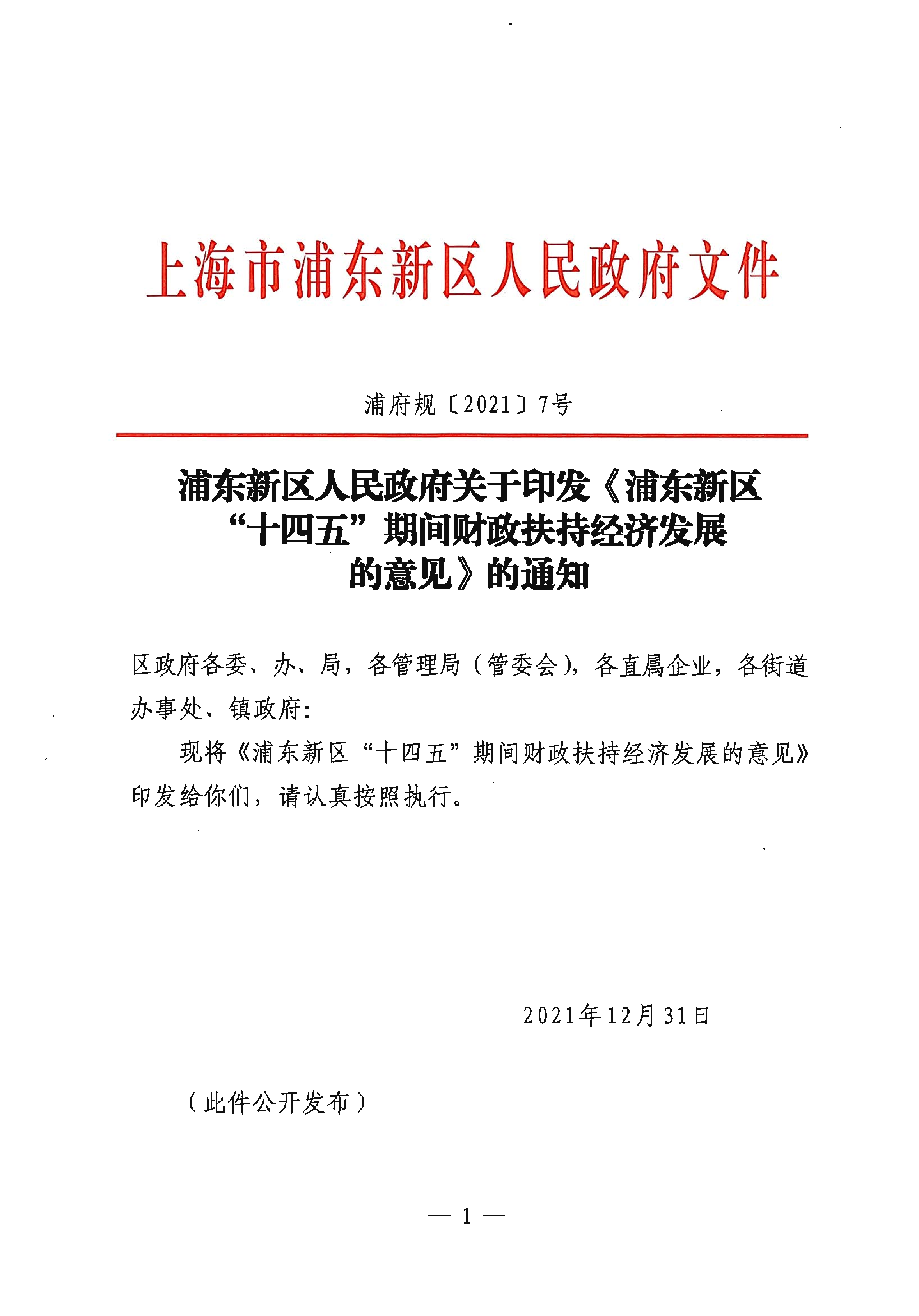 浦東新區(qū)人民政府關(guān)于印發(fā)《浦東新區(qū)“十四五”期間財(cái)政扶持經(jīng)濟(jì)發(fā)展的意見》的通知