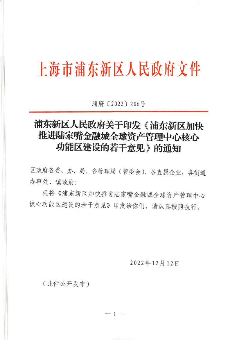 浦東新區(qū)加快推進(jìn)陸家嘴金融城全球資產(chǎn)管理中心核心功能區(qū)建設(shè)的若干意見(jiàn)