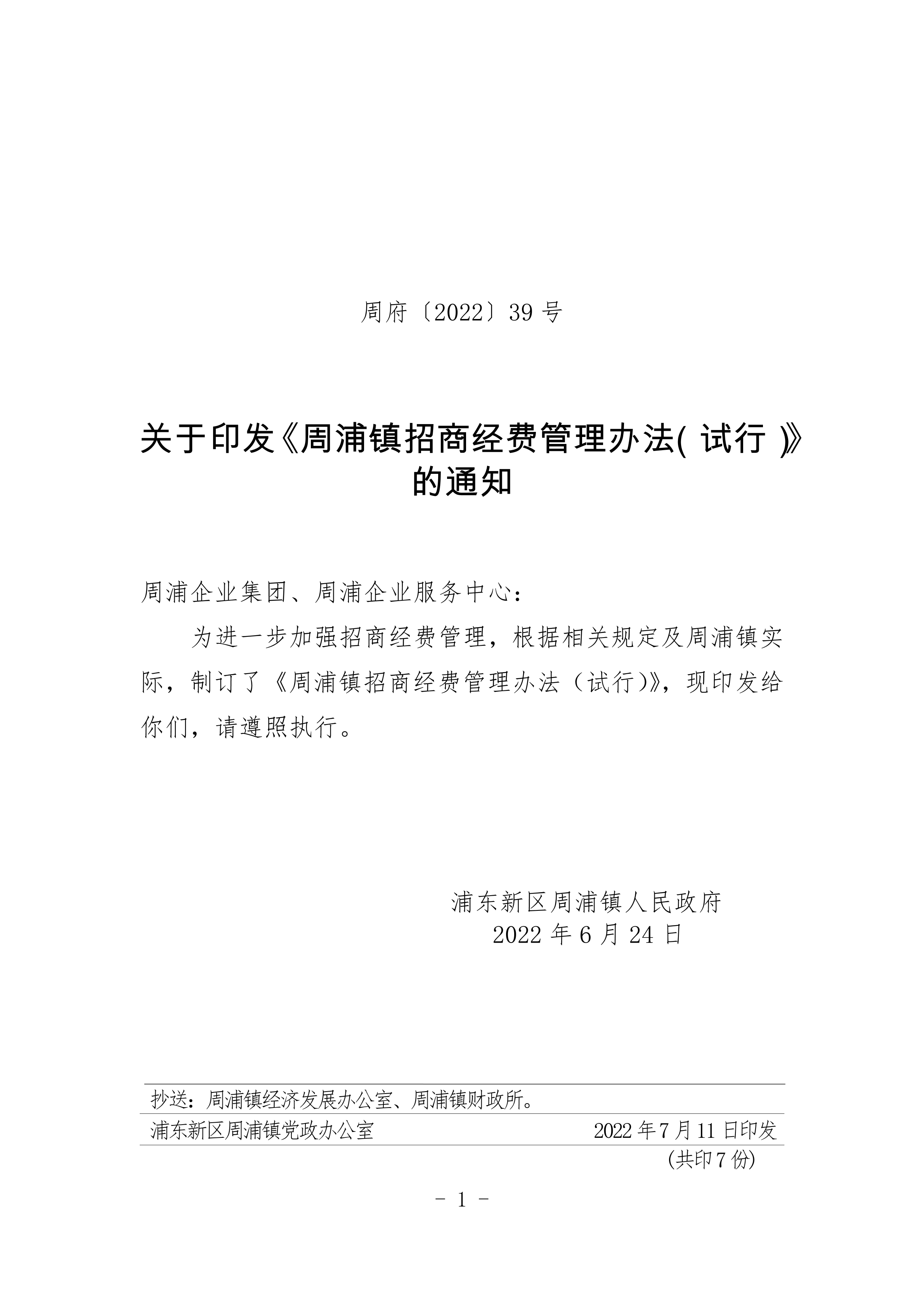關于印發(fā)《周浦鎮(zhèn)招商經(jīng)費管理辦法(試行)》的通知