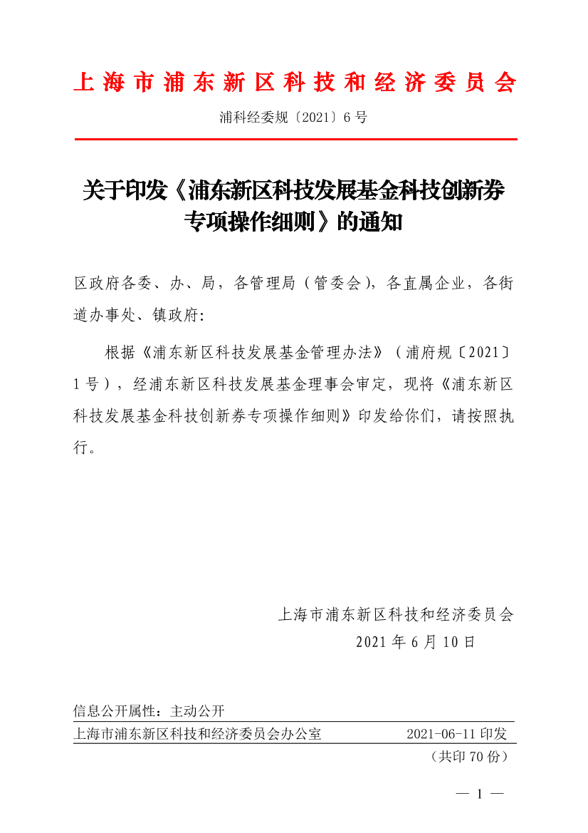 關(guān)于印發(fā)《浦東新區(qū)科技發(fā)展基金科技創(chuàng)新券專項(xiàng)操作細(xì)則》的通知