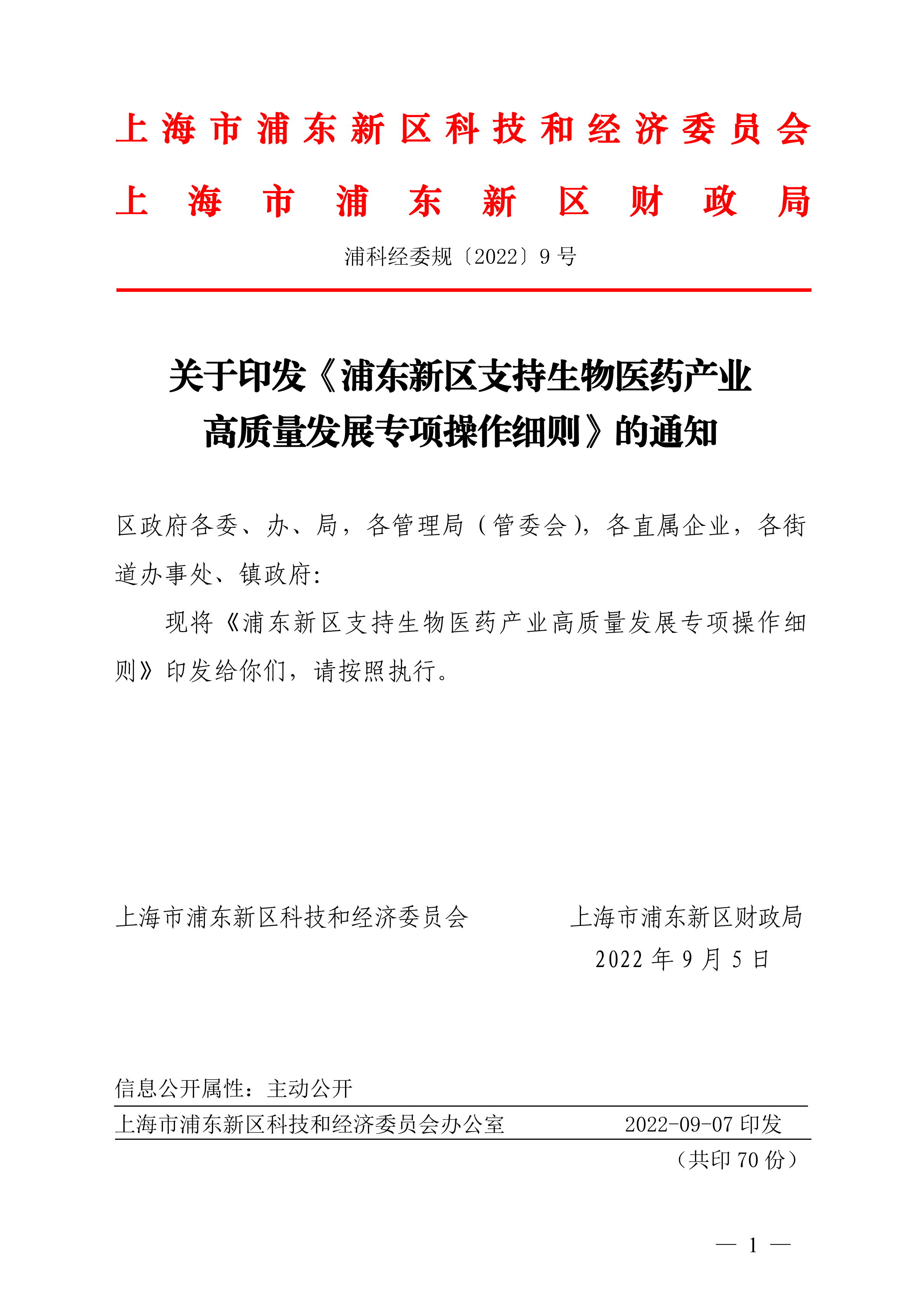 ??現(xiàn)將《浦東新區(qū)支持生物醫(yī)藥產(chǎn)業(yè)高質量發(fā)展專項操作細則》印發(fā)給你們,請按照執(zhí)行。