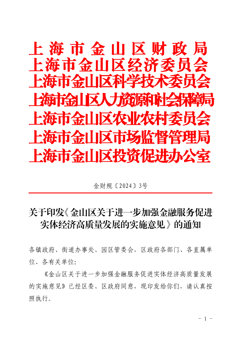 金山區(qū)關(guān)于進(jìn)一步加強金融服務(wù)促進(jìn)實體經(jīng)濟高質(zhì)量發(fā)展的實施意見