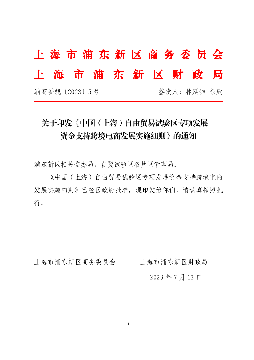 ??《中國(上海)自由貿(mào)易試驗區(qū)專項發(fā)展資金支持跨境電商發(fā)展實施細則》已經(jīng)區(qū)政府批準(zhǔn),現(xiàn)印發(fā)給你們,請認(rèn)真按照執(zhí)行。