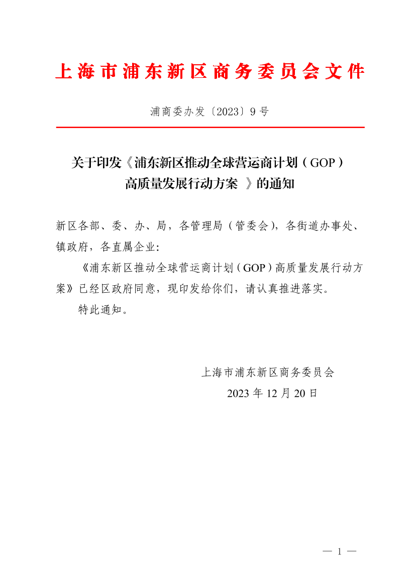 ??《浦東新區(qū)推動全球營運商計劃(GOP)高質量發(fā)展行動方案》已經(jīng)區(qū)政府同意,現(xiàn)印發(fā)給你們,請認真推進落實。