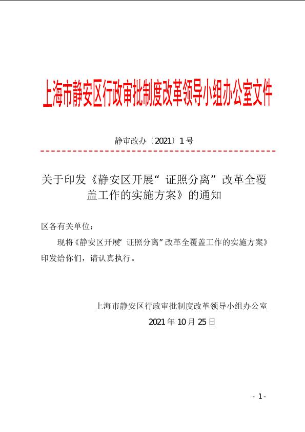 ??現(xiàn)將《靜安區(qū)開(kāi)展“證照分離”改革全覆蓋工作的實(shí)施方案》印發(fā)給你們,請(qǐng)認(rèn)真執(zhí)行。