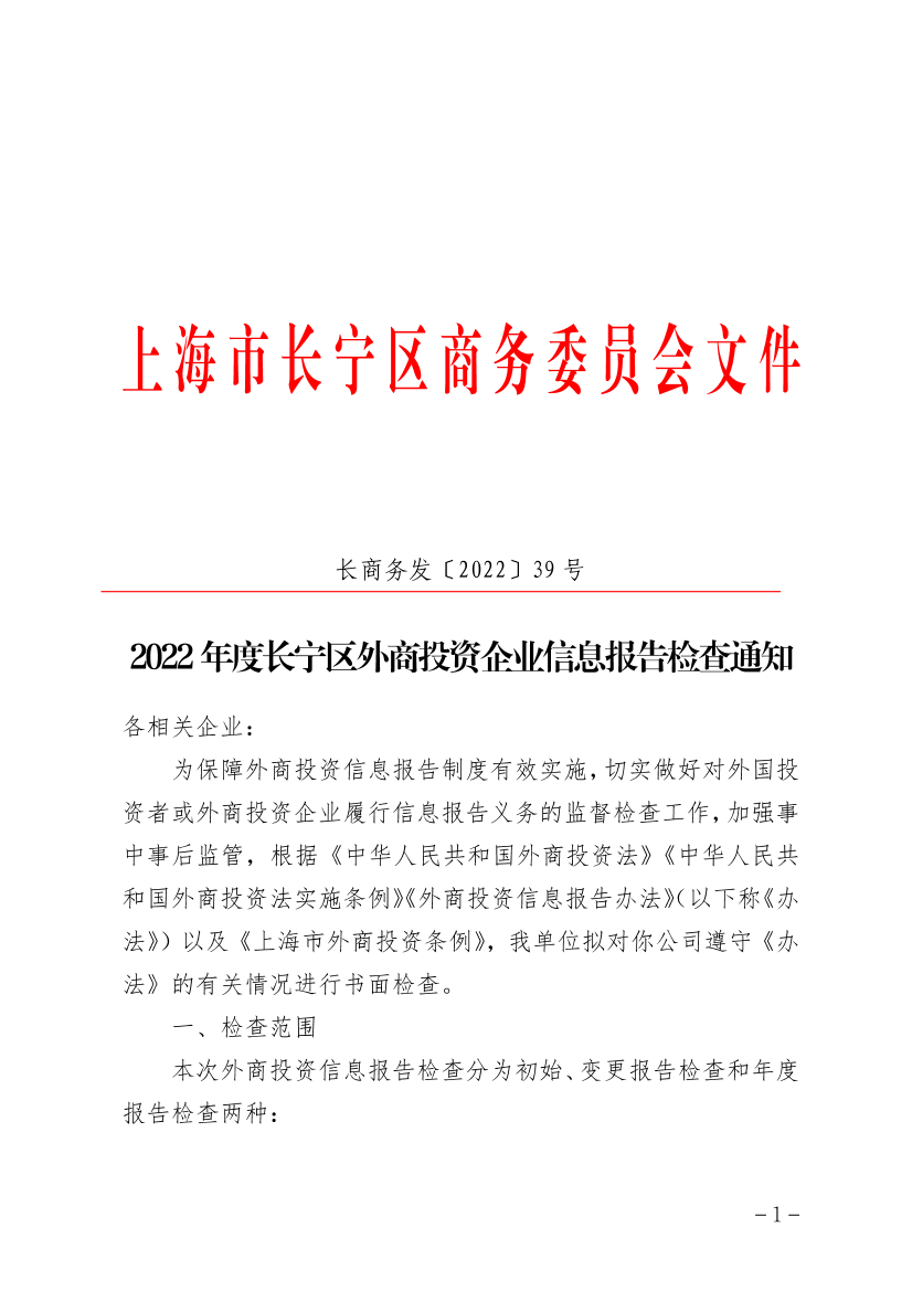 2022年度長寧區(qū)外商投資企業(yè)信息報告檢查通知