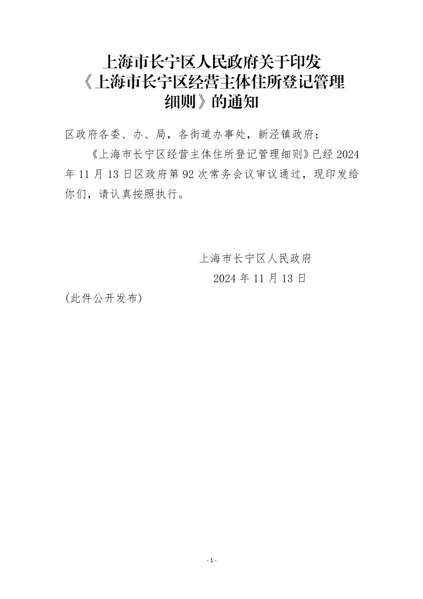 上海市長寧區(qū)人民政府關于印發(fā)《上海市長寧區(qū)經營主體住所登記管理細則》的通知