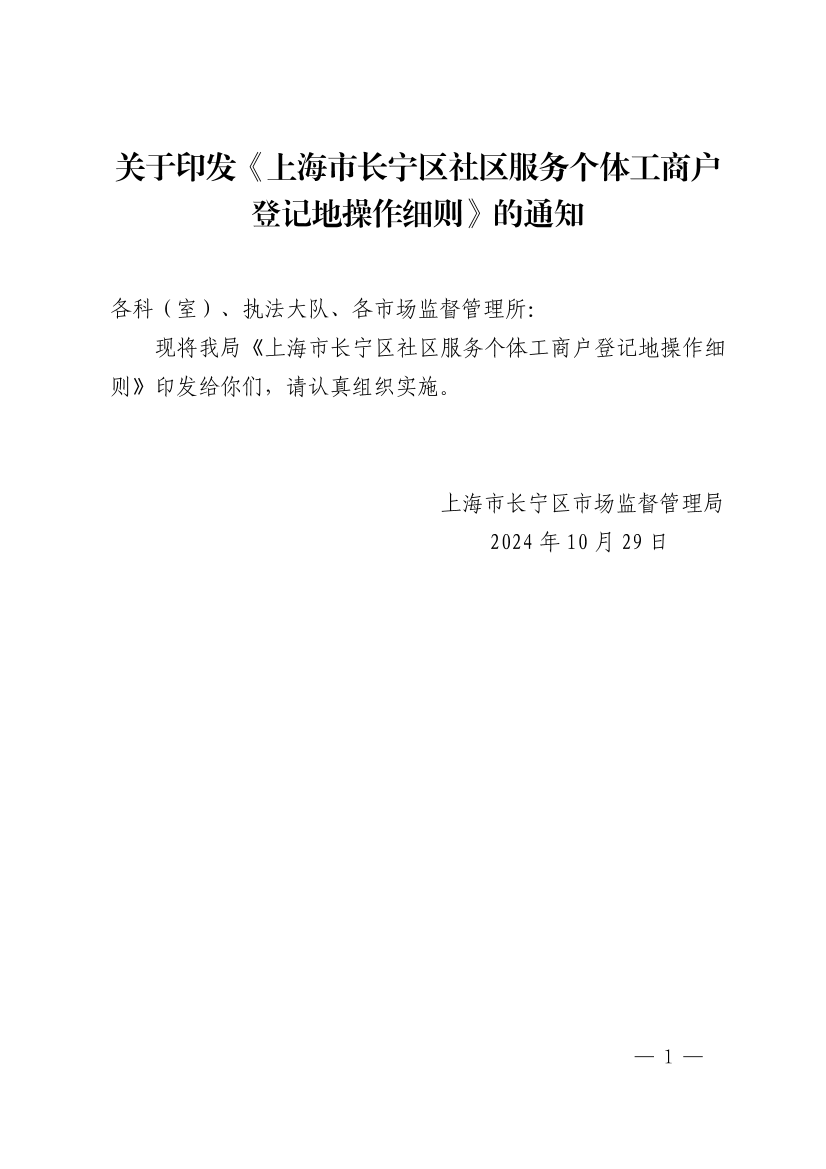 關(guān)于印發(fā)《上海市長寧區(qū)社區(qū)服務(wù)個體工商戶登記地操作細則》的通知