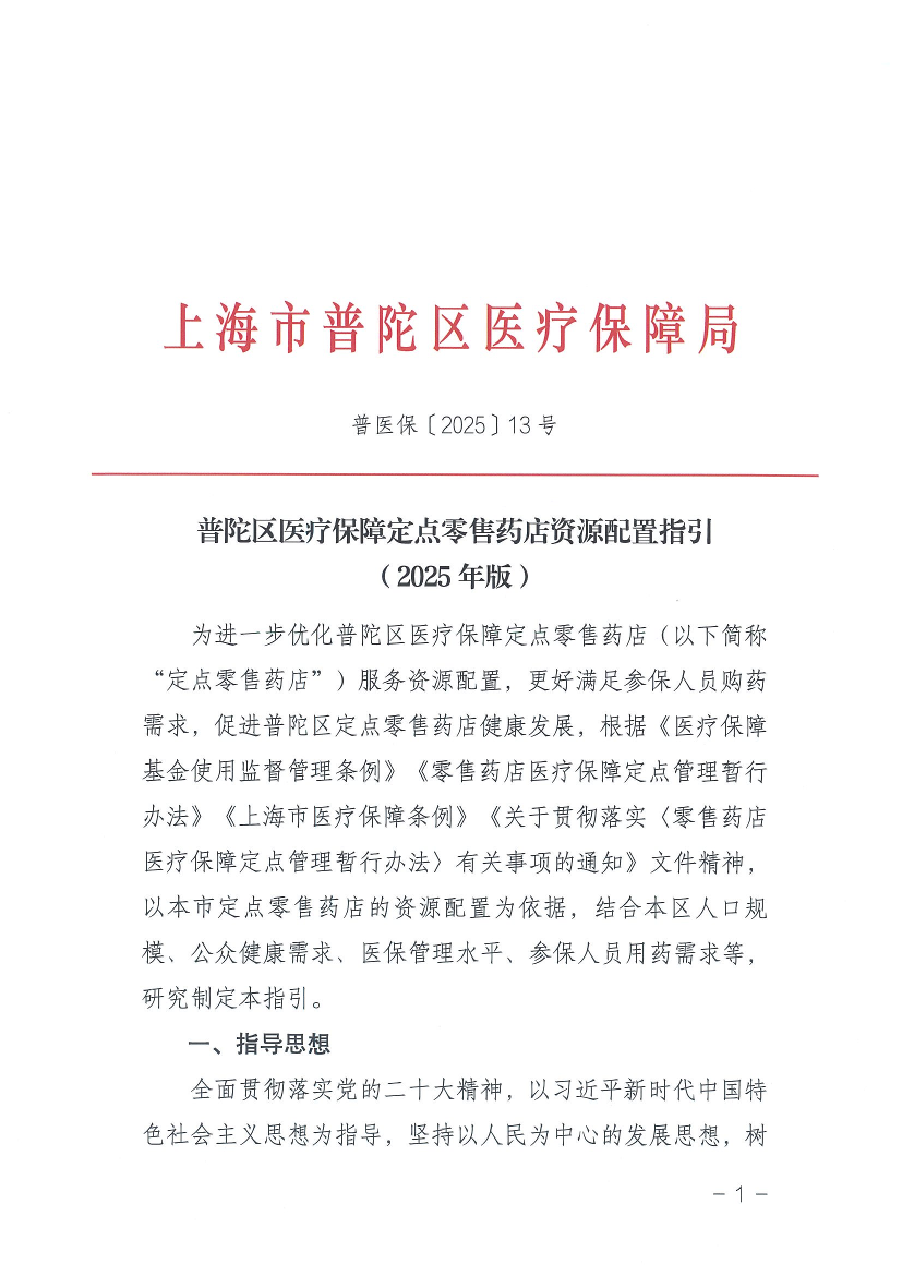 為進(jìn)一步優(yōu)化普陀區(qū)醫(yī)療保障定點(diǎn)零售藥店(以下簡(jiǎn)稱“定點(diǎn)零售藥店”)服務(wù)資源配置,更好滿足參保人員購(gòu)藥需求,促進(jìn)普陀區(qū)定點(diǎn)零售藥店健康發(fā)展,根據(jù)《醫(yī)療保障基金使用監(jiān)督管理?xiàng)l例》《零售藥店醫(yī)療保障定點(diǎn)管理暫行辦法》《上海市醫(yī)療保障條例》《關(guān)于貫徹落實(shí)〈零售藥店醫(yī)療保障定點(diǎn)管理暫行辦法〉有關(guān)事項(xiàng)的通知》文件精神,以本市定點(diǎn)零售藥店的資源配置為依據(jù),結(jié)合本區(qū)人口規(guī)模、公眾健康需求、醫(yī)保管理水平、參保人員用藥需求等,研究制定本指引。