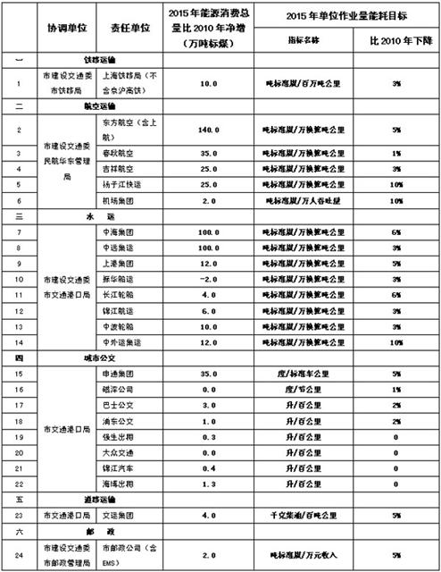 上海市交通運輸業(yè)用能總量控制及提高能效目標