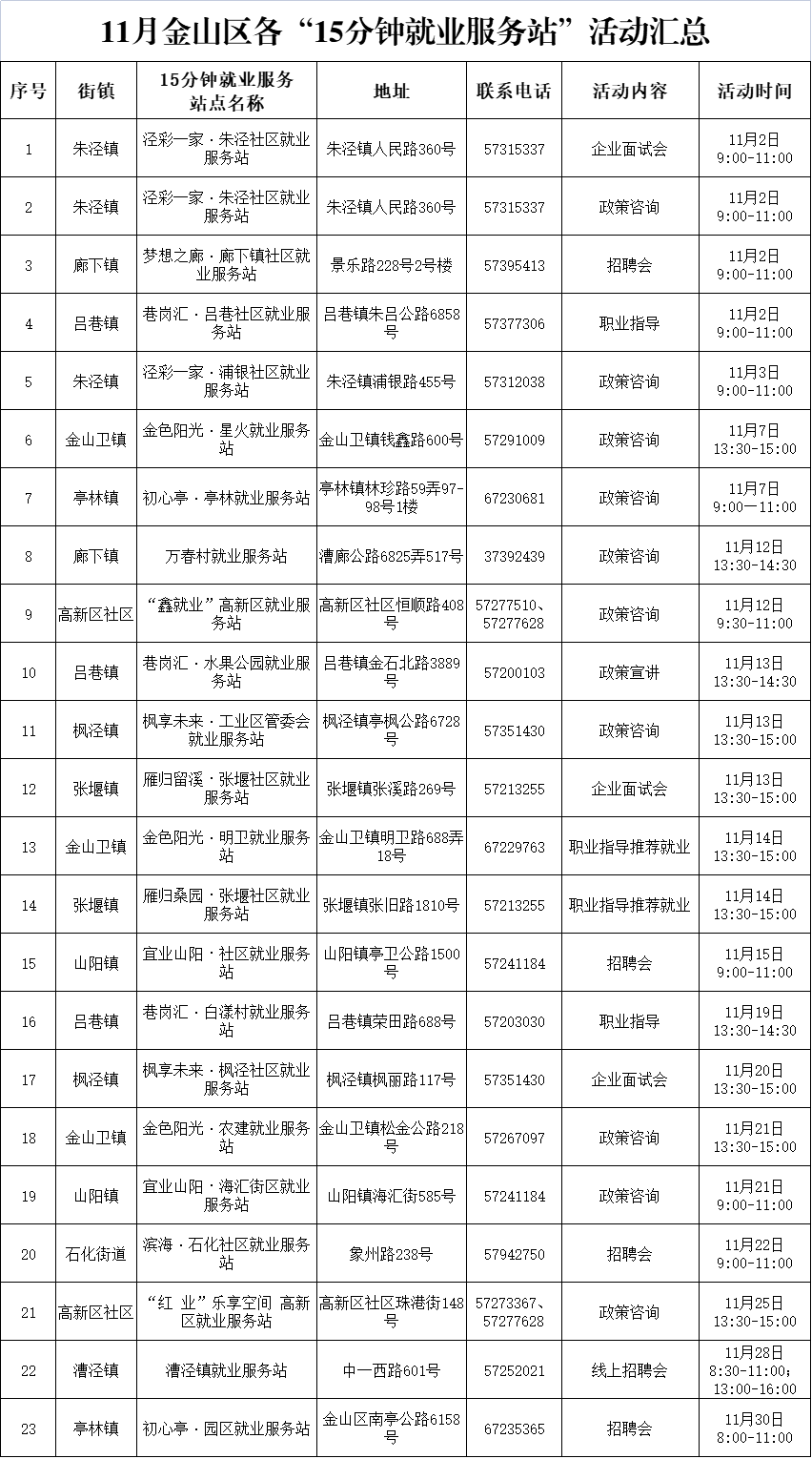 ??“15分鐘就業(yè)服務(wù)圈”社區(qū)就業(yè)服務(wù)站點(diǎn)建設(shè)市政府實(shí)事項(xiàng)目作為人社部門(mén)常態(tài)化政府開(kāi)放活動(dòng)之一,我們將持續(xù)發(fā)布精彩服務(wù)內(nèi)容,今天為大家?guī)?lái)黃浦區(qū)、長(zhǎng)寧區(qū)、嘉定區(qū)、金山區(qū)、青浦區(qū)、崇明區(qū)、楊浦區(qū)、閔行區(qū)、寶山區(qū)近期就業(yè)活動(dòng)安排!
