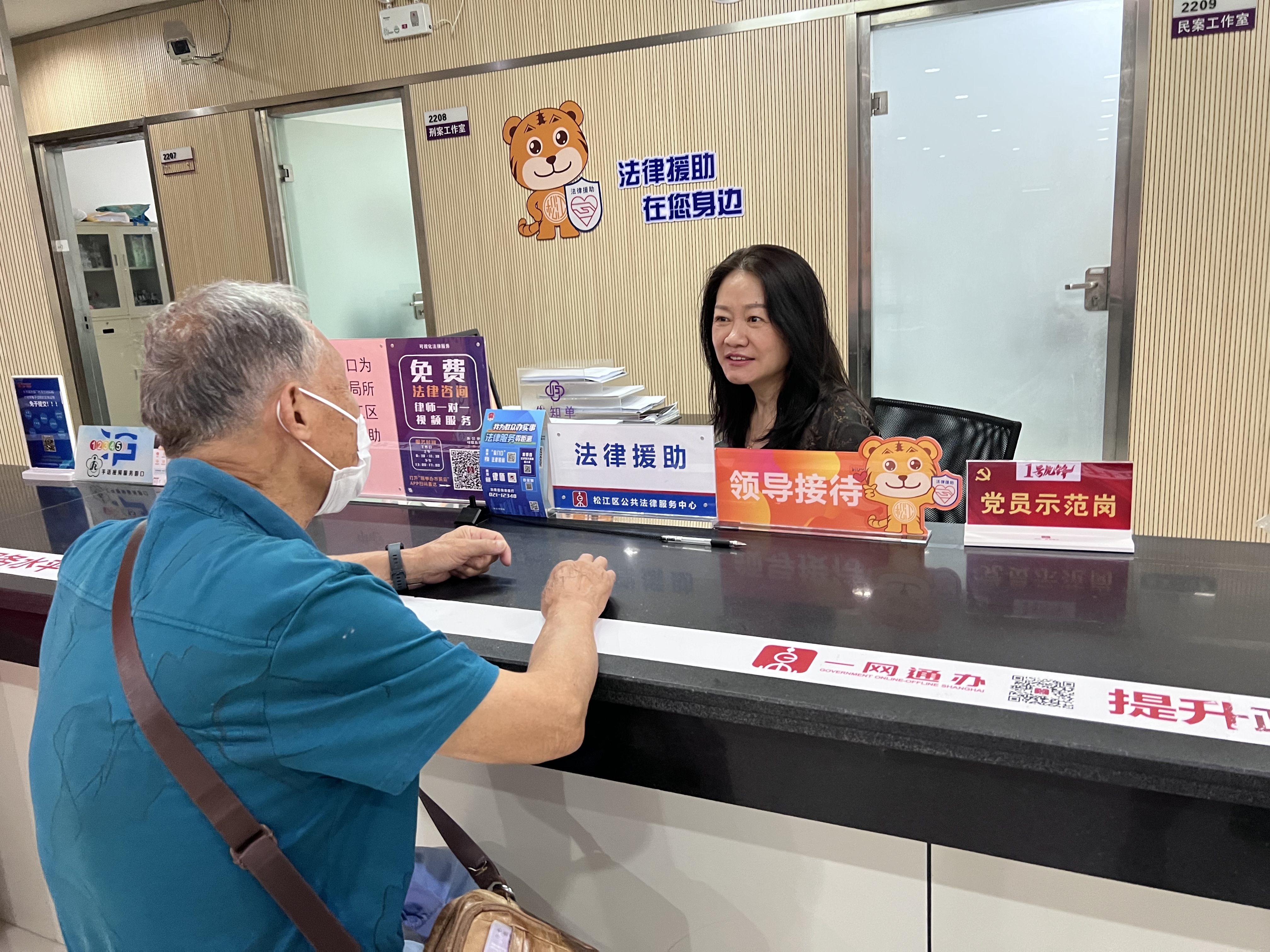 在“援松松”誕生一周年之際,正值政府開放月之時,區(qū)法律援助中心開展“法援惠民生”市民公眾開放日活動?;顒赢?dāng)天開啟“首日領(lǐng)導(dǎo)接待”,松江區(qū)司法局黨組成員、副局長孫祿君深入法援一線窗口,為群眾提供“幫辦”服務(wù)。
