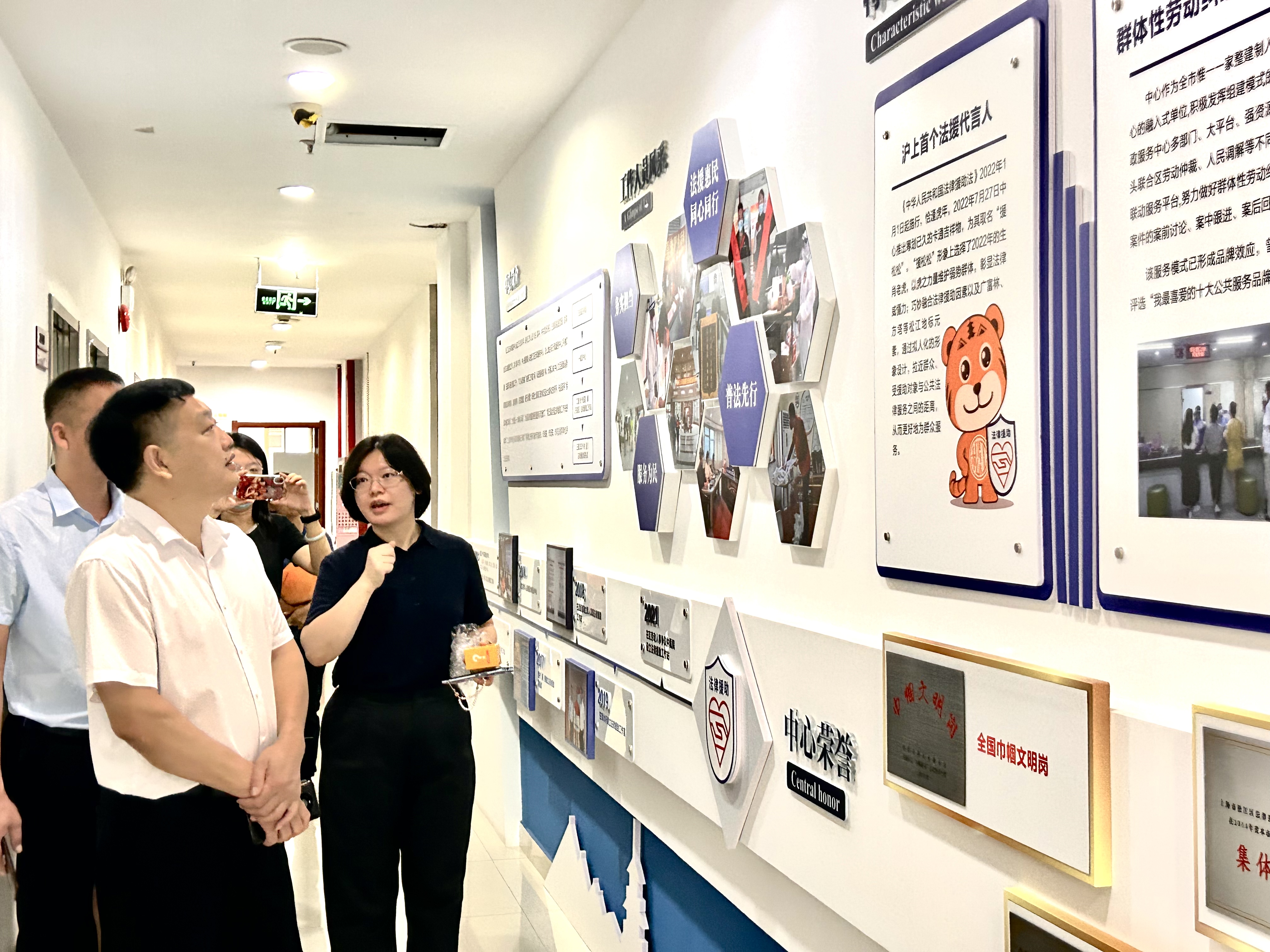 中心接待大廳設(shè)有合照打卡、盲盒抽獎等互動體驗活動,現(xiàn)場邀請市民朋友們來當(dāng)“法律援助體驗官”,帶領(lǐng)大家參觀法援文化墻及榮譽室,并介紹法援窗口情況、申請法律援助的條件和范圍等。參觀結(jié)束后,中心工作人員還為大家精心準(zhǔn)備法律援助宣傳手冊和《法律援助法》讀本,并引導(dǎo)有需求的市民現(xiàn)場體驗法律咨詢或法律援助咨詢服務(wù)。