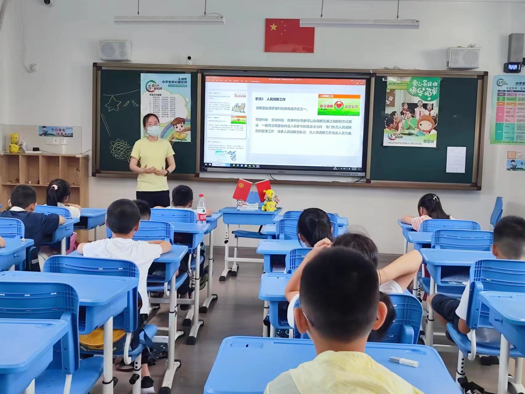 區(qū)司法局團總支聯(lián)合區(qū)青年活動中心為愛心暑托班的孩子們開展法治宣講,通過簡單易懂的語言、生動有趣的故事介紹人民調(diào)解、公共法律服務(wù)等司法行政工作,用“小窗口”展示新時代司法行政“新風(fēng)采”,將“法治種子”種進孩子們的心田。