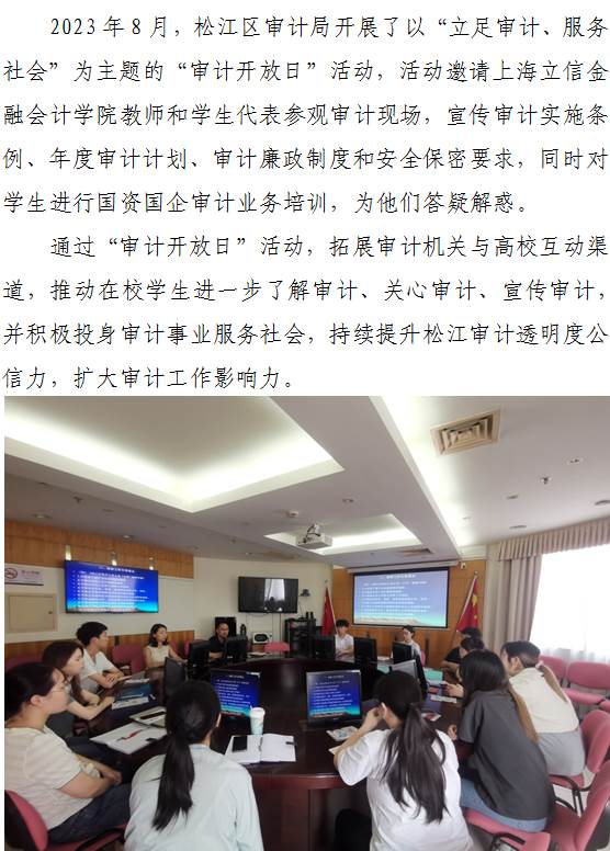 立足審計(jì)、服務(wù)社會——松江區(qū)審計(jì)局開展2023年“審計(jì)開放日”活動