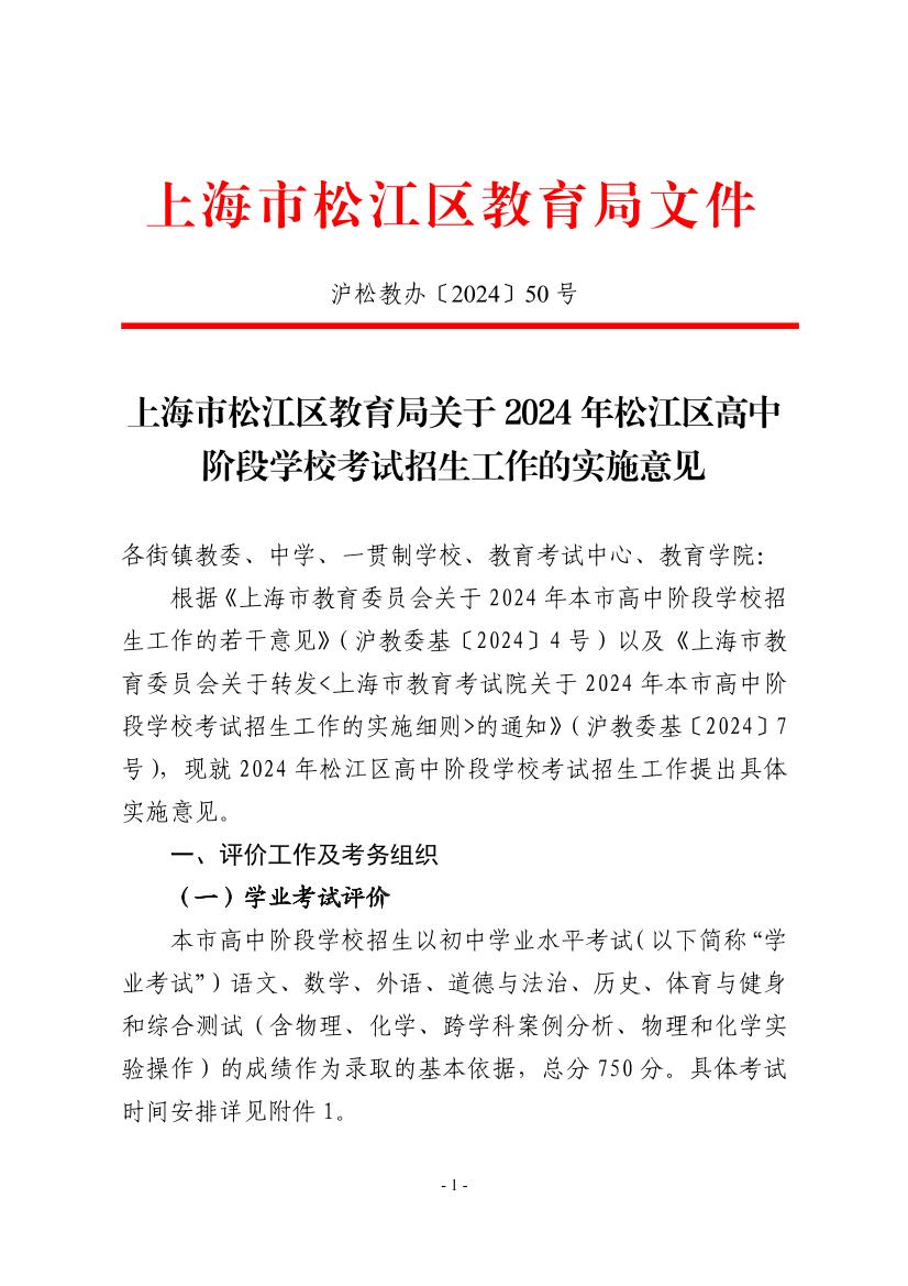 關(guān)于2024年松江區(qū)高中階段學(xué)??荚囌猩ぷ鞯膶嵤┮庖?