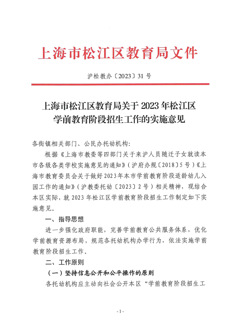 上海市松江區(qū)教育局關(guān)于2023年松江區(qū)學(xué)前教育階段招生工作的實(shí)施意見