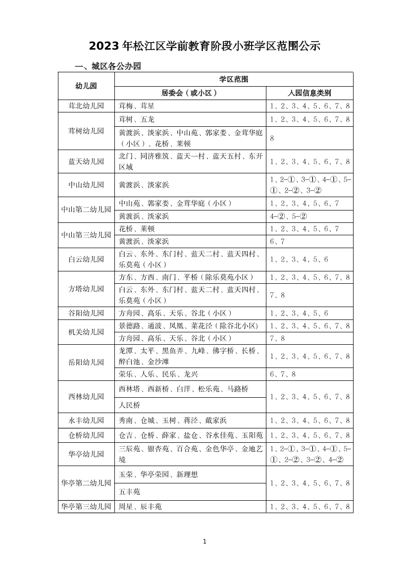 2023年松江區(qū)學前教育階段小班學區(qū)范圍公示