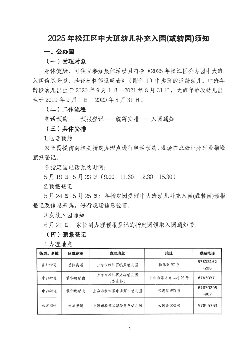2025年松江區(qū)中大班幼兒補(bǔ)充入園(或轉(zhuǎn)園)須知