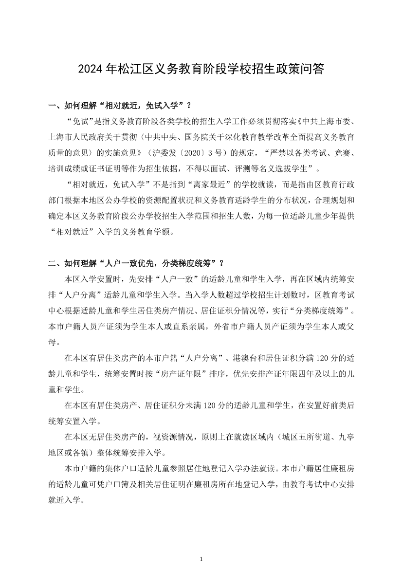 上海市松江區(qū)教育局關于2024年本區(qū)義務教育階段學校招生入學工作的實施意見