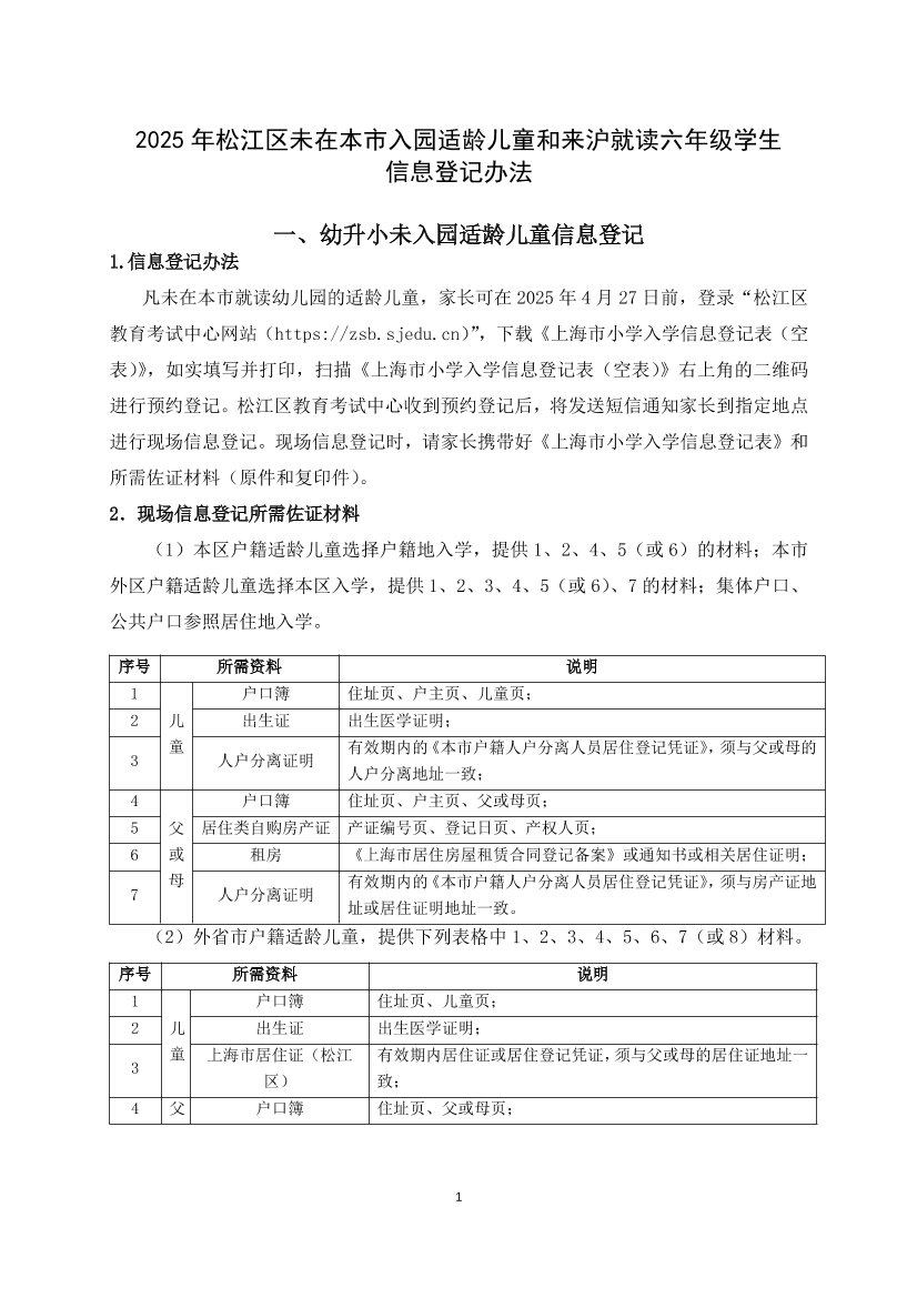 2025年松江區(qū)未在本市入園適齡兒童和來(lái)滬就讀六年級(jí)學(xué)生信息登記辦法