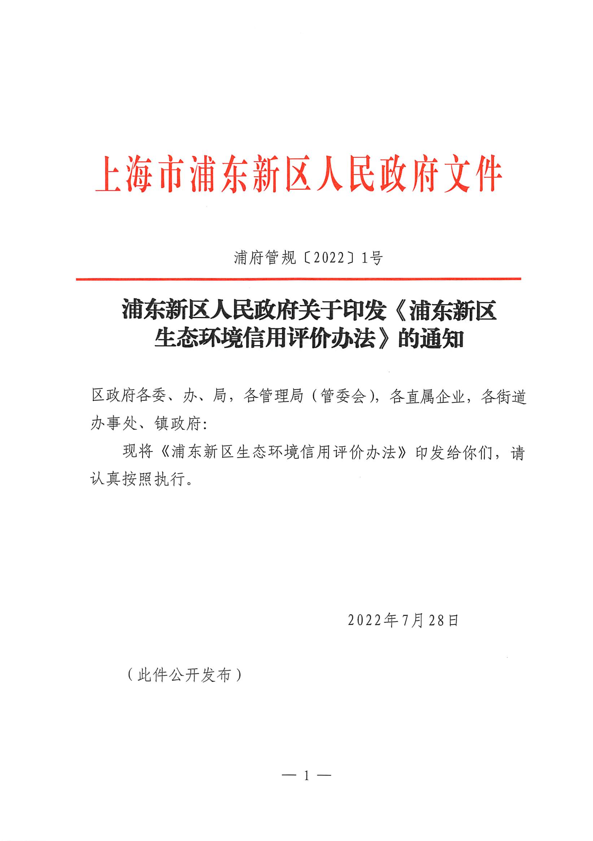 浦東新區(qū)人民政府關(guān)于印發(fā)《浦東新區(qū)生態(tài)環(huán)境信用評(píng)價(jià)辦法》的通知