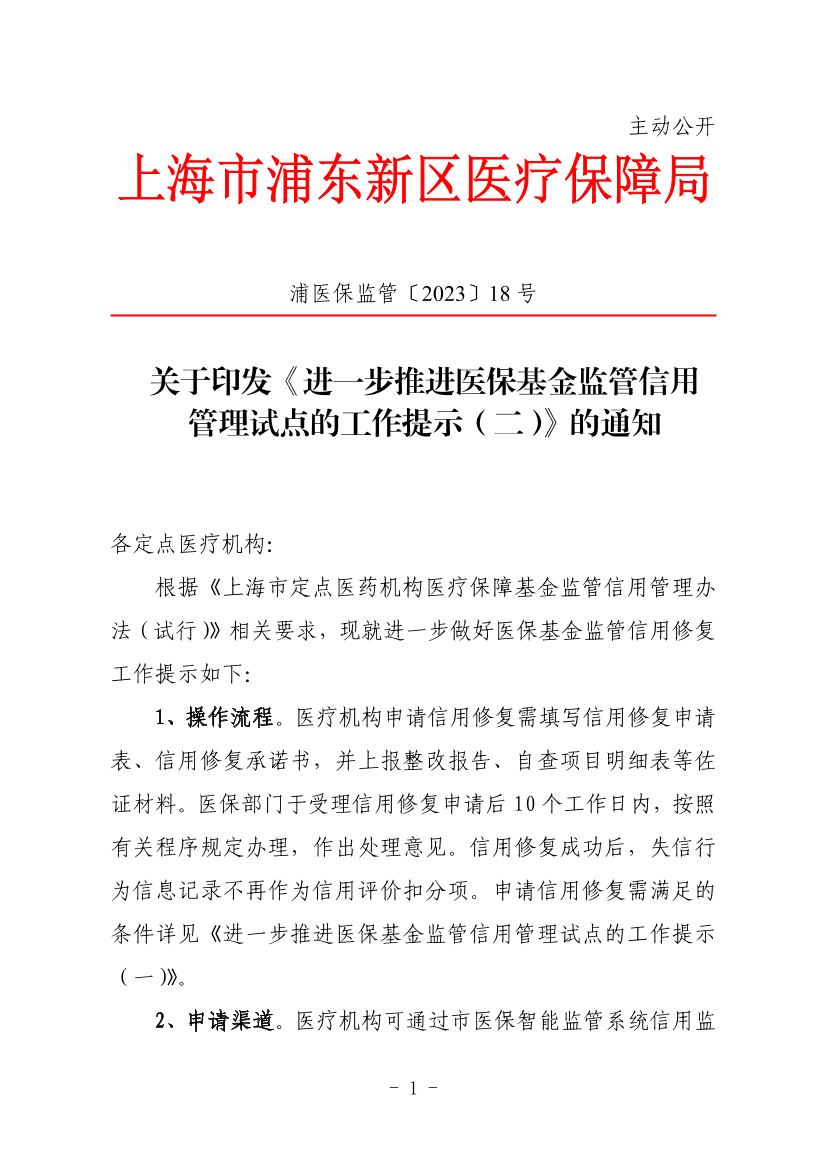 ??根據(jù)《上海市定點醫(yī)藥機構(gòu)醫(yī)療保障基金監(jiān)管信用管理辦法(試行)》相關(guān)要求,現(xiàn)就進一步做好醫(yī)保基金監(jiān)管信用修復(fù)工作提示如下:
