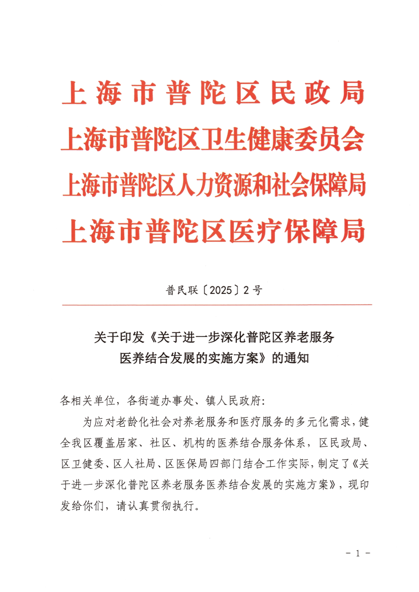 關(guān)于進一步深化普陀區(qū)養(yǎng)老服務(wù)醫(yī)養(yǎng)結(jié)合發(fā)展的實施方案