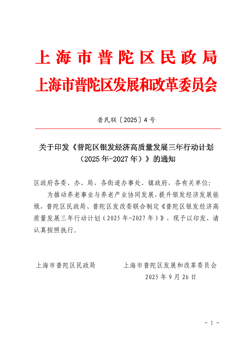 普陀區(qū)銀發(fā)經(jīng)濟(jì)高質(zhì)量發(fā)展三年行動(dòng)計(jì)劃(2025年-2027年)