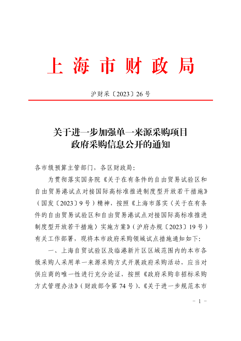 二、上海自貿(mào)試驗(yàn)區(qū)及臨港新片區(qū)區(qū)域范圍以外的本市各級(jí)采購人采用單一來源采購方式開展政府采購活動(dòng),參照上述規(guī)定執(zhí)行。