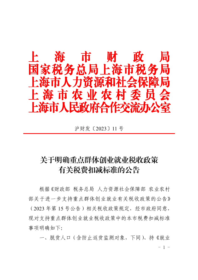 ??根據(jù)《財(cái)政部 稅務(wù)總局 人力資源社會保障部 農(nóng)業(yè)農(nóng)村部關(guān)于進(jìn)一步支持重點(diǎn)群體創(chuàng)業(yè)就業(yè)有關(guān)稅收政策的公告》(2023年第15號公告)相關(guān)稅收政策規(guī)定,經(jīng)市政府同意,現(xiàn)對支持重點(diǎn)群體創(chuàng)業(yè)就業(yè)稅收政策中的本市稅費(fèi)扣減標(biāo)準(zhǔn)事項(xiàng)明確如下: