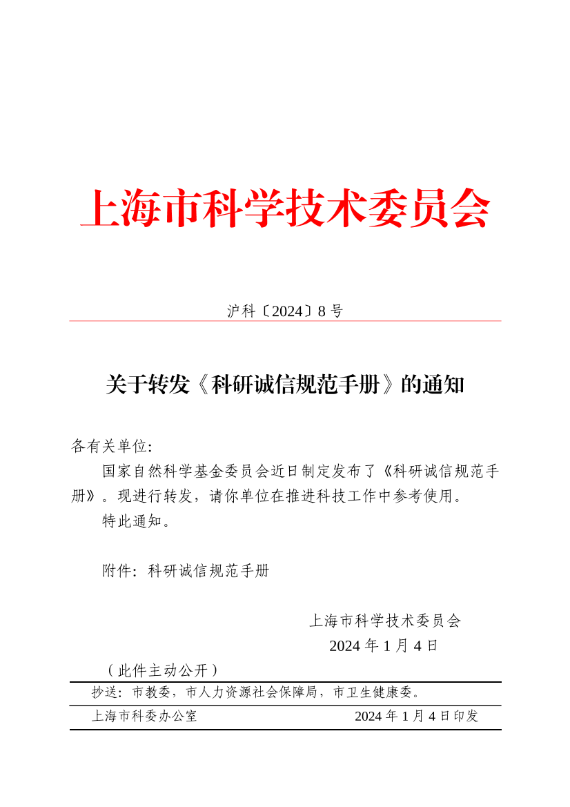 關(guān)于轉(zhuǎn)發(fā)《科研誠信規(guī)范手冊》的通知