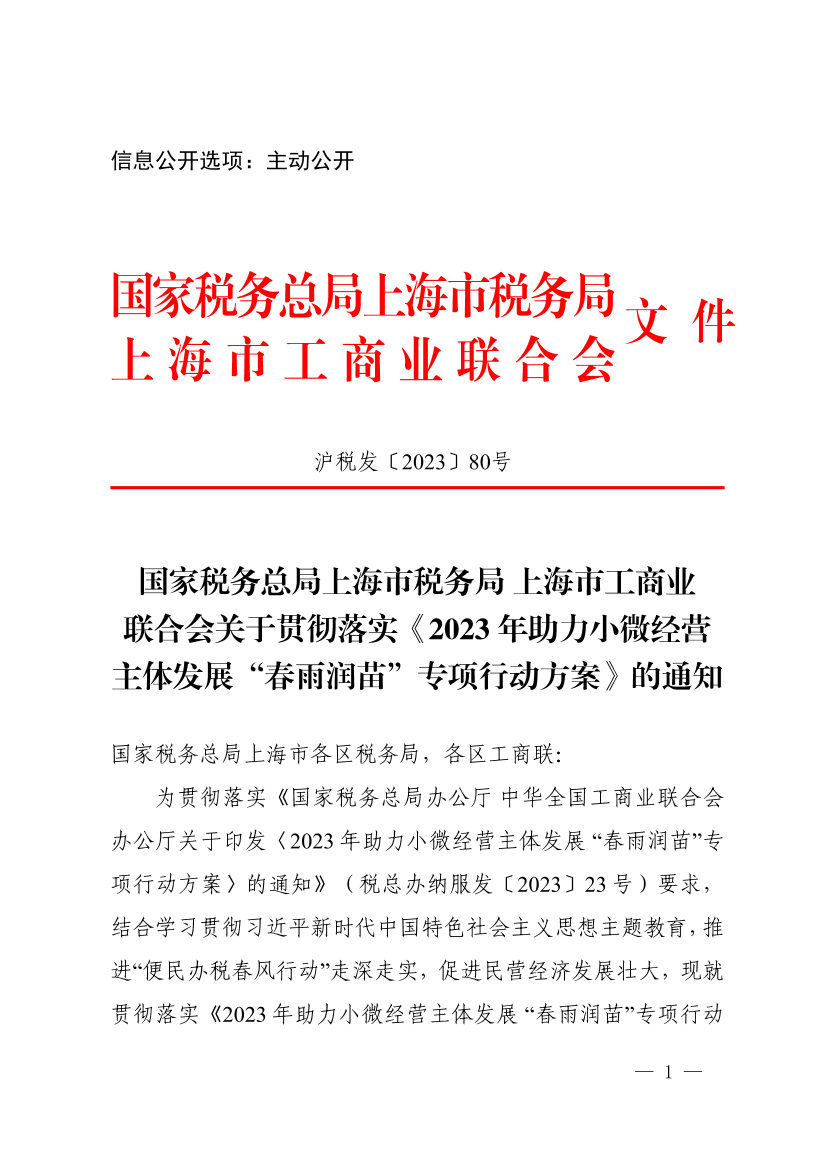 ??為貫徹落實(shí)《國家稅務(wù)總局辦公廳 中華全國工商業(yè)聯(lián)合會辦公廳關(guān)于印發(fā)〈2023年助力小微經(jīng)營主體發(fā)展 “春雨潤苗”專項(xiàng)行動方案〉的通知》(稅總辦納服發(fā)〔2023〕23號)要求,結(jié)合學(xué)習(xí)貫徹習(xí)近平新時代中國特色社會主義思想主題教育,推進(jìn)“便民辦稅春風(fēng)行動”走深走實(shí),促進(jìn)民營經(jīng)濟(jì)發(fā)展壯大,現(xiàn)就貫徹落實(shí)《2023年助力小微經(jīng)營主體發(fā)展 “春雨潤苗”專項(xiàng)行動方案》有關(guān)事宜通知如下。