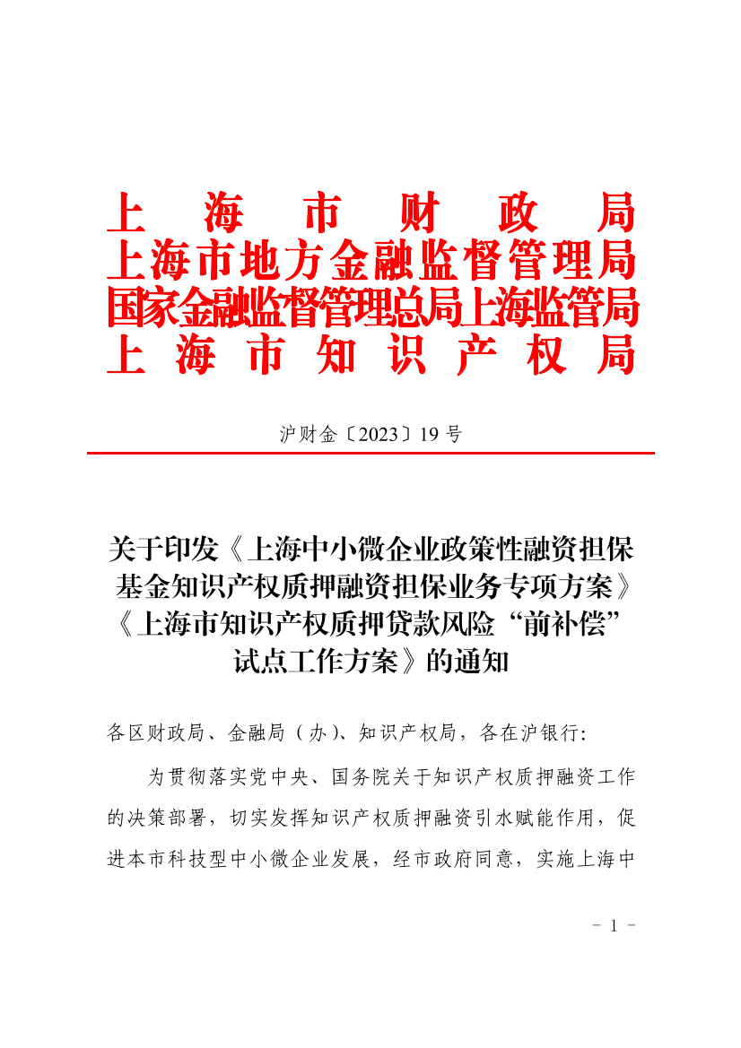 1. 上海中小微企業(yè)政策性融資擔(dān)?;鹬R(shí)產(chǎn)權(quán)質(zhì)押融資擔(dān)保業(yè)務(wù)專項(xiàng)方案
