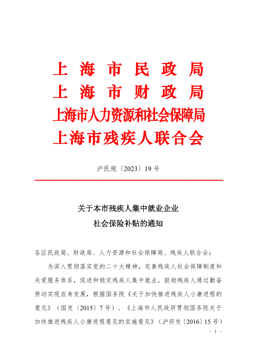 ??為深入貫徹落實黨的二十大精神,完善殘疾人社會保障制度和關愛服務體系,促進和穩(wěn)定殘疾人集中就業(yè),鼓勵殘疾人通過勤奮勞動實現(xiàn)自身發(fā)展,根據(jù)國務院《關于加快推進殘疾人小康進程的意見》(國發(fā)〔2015〕7號)、《上海市人民政府貫徹國務院關于加快推進殘疾人小康進程意見的實施意見》(滬府發(fā)〔2016〕15號)等文件精神,結(jié)合本市實際,現(xiàn)就實施本市殘疾人集中就業(yè)企業(yè)社會保險補貼有關事項通知如下: