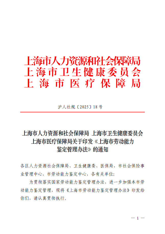 ??第三十九條 本辦法自2025年9月1日起施行,有效期至2030年8月31日。本辦法實施后,《上海市人力資源和社會保障局 上海市衛(wèi)生健康委員會 上海市醫(yī)療保障局關(guān)于印發(fā)〈上海市勞動能力鑒定管理辦法〉的通知》(滬人社規(guī)〔2022〕31號)同時廢止。