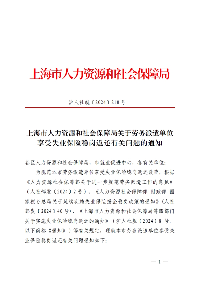 ??為規(guī)范本市勞務派遣單位享受失業(yè)保險穩(wěn)崗返還政策,根據(jù)《人力資源社會保障部關于進一步規(guī)范勞務派遣工作的意見》(人社部發(fā)〔2024〕2號)、《人力資源社會保障部 財政部 國家稅務總局關于延續(xù)實施失業(yè)保險援企穩(wěn)崗政策的通知》(人社部發(fā)〔2024〕40號)、《上海市人力資源和社會保障局等四部門關于實施失業(yè)保險穩(wěn)崗返還的通知》(滬人社規(guī)〔2024〕8 號,以下簡稱《通知》)等有關規(guī)定,現(xiàn)就本市勞務派遣單位享受失業(yè)保險穩(wěn)崗返還有關問題通知如下: