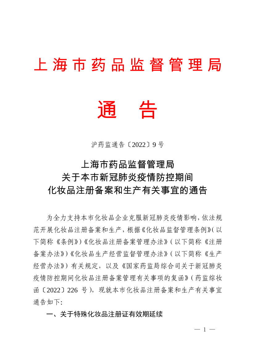 為全力支持本市化妝品企業(yè)克服新冠肺炎疫情影響,依法規(guī)范開展化妝品注冊備案和生產(chǎn),根據(jù)《化妝品監(jiān)督管理條例》(以下簡稱《條例》)《化妝品注冊備案管理辦法》(以下簡稱《注冊備案辦法》)《化妝品生產(chǎn)經(jīng)營監(jiān)督管理辦法》(以下簡稱《生產(chǎn)經(jīng)營辦法》)有關規(guī)定,以及《國家藥監(jiān)局綜合司關于新冠肺炎疫情防控期間化妝品注冊備案管理有關事項的復函》(藥監(jiān)綜妝函〔2022〕226號),現(xiàn)就本市化妝品注冊備案和生產(chǎn)有關事宜通告如下: