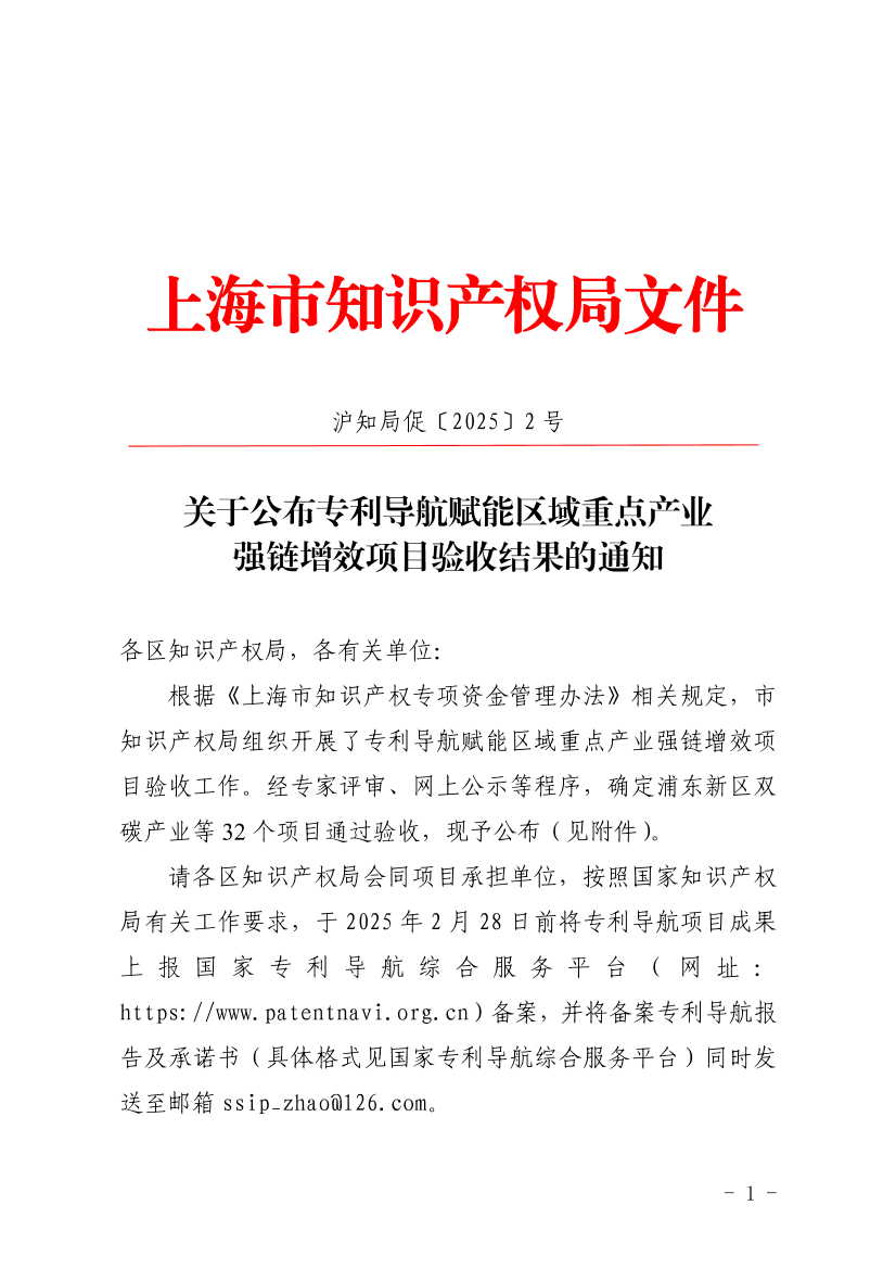 ??根據(jù)《上海市知識(shí)產(chǎn)權(quán)專項(xiàng)資金管理辦法》相關(guān)規(guī)定,市知識(shí)產(chǎn)權(quán)局組織開(kāi)展了專利導(dǎo)航賦能區(qū)域重點(diǎn)產(chǎn)業(yè)強(qiáng)鏈增效項(xiàng)目驗(yàn)收工作。經(jīng)專家評(píng)審、網(wǎng)上公示等程序,確定浦東新區(qū)雙碳產(chǎn)業(yè)等32個(gè)項(xiàng)目通過(guò)驗(yàn)收,現(xiàn)予公布(見(jiàn)附件)。