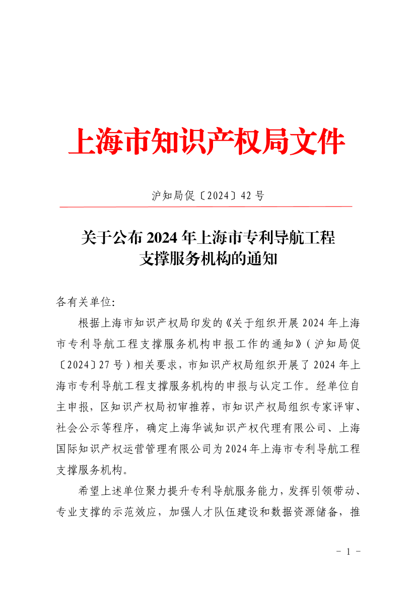 ??根據(jù)上海市知識產(chǎn)權(quán)局印發(fā)的《關(guān)于組織開展2024年上海市專利導(dǎo)航工程支撐服務(wù)機構(gòu)申報工作的通知》(滬知局促〔2024〕27號)相關(guān)要求,市知識產(chǎn)權(quán)局組織開展了2024年上海市專利導(dǎo)航工程支撐服務(wù)機構(gòu)的申報與認定工作。經(jīng)單位自主申報,區(qū)知識產(chǎn)權(quán)局初審?fù)扑],市知識產(chǎn)權(quán)局組織專家評審、社會公示等程序,確定上海華誠知識產(chǎn)權(quán)代理有限公司、上海國際知識產(chǎn)權(quán)運營管理有限公司為2024年上海市專利導(dǎo)航工程支撐服務(wù)機構(gòu)。