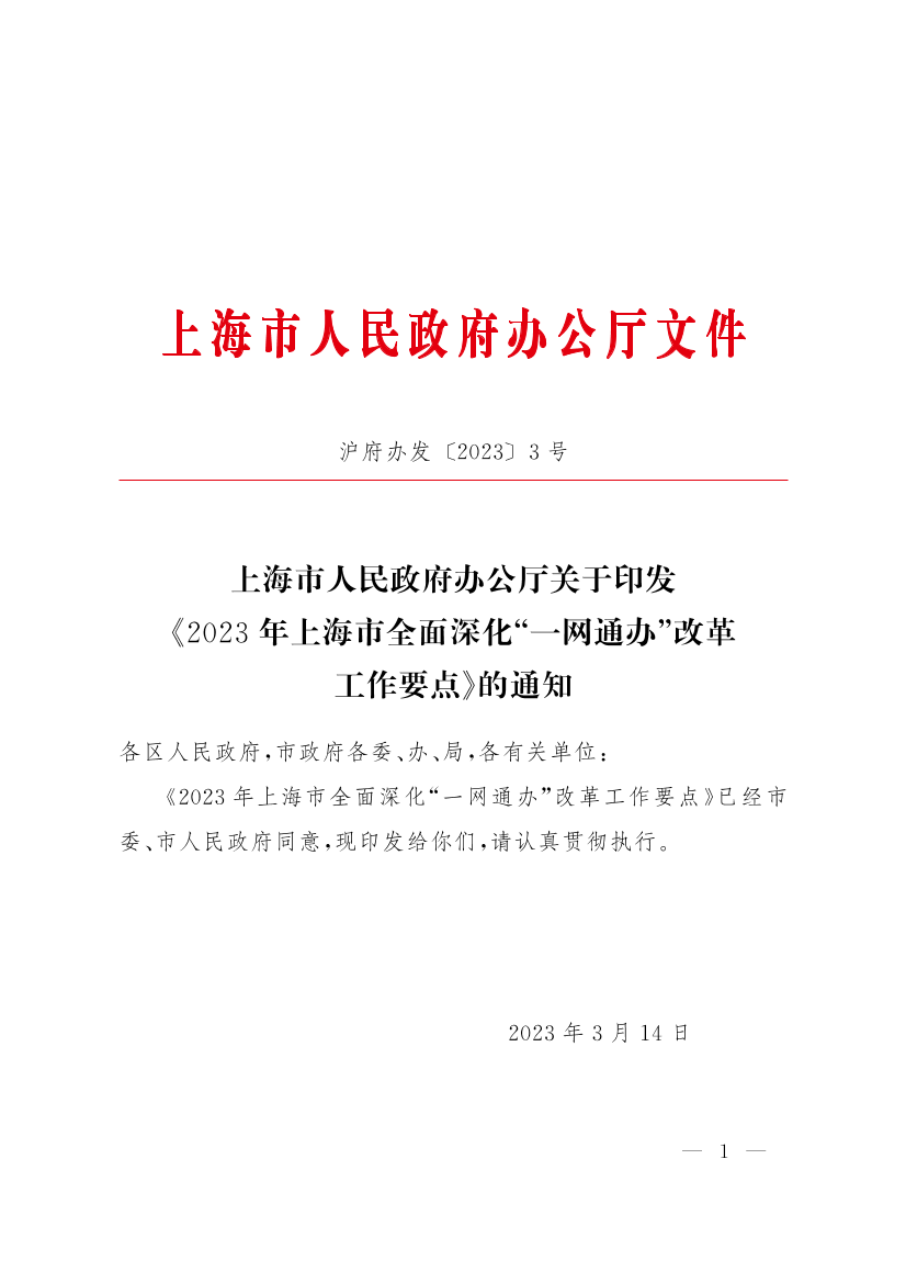 上海市人民政府辦公廳關(guān)于印發(fā)《2023年上海市全面深化“一網(wǎng)通辦”改革工作要點》的通知