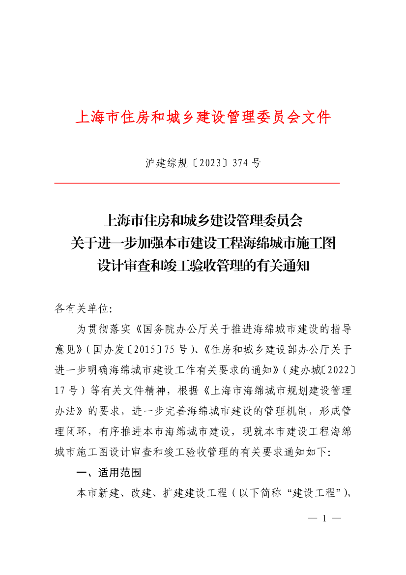 ??為貫徹落實(shí)《國(guó)務(wù)院辦公廳關(guān)于推進(jìn)海綿城市建設(shè)的指導(dǎo)意見(jiàn)》(國(guó)辦發(fā)〔2015〕75號(hào))、《住房和城鄉(xiāng)建設(shè)部辦公廳關(guān)于進(jìn)一步明確海綿城市建設(shè)工作有關(guān)要求的通知》(建辦城〔2022〕17號(hào))等有關(guān)文件精神,根據(jù)《上海市海綿城市規(guī)劃建設(shè)管理辦法》的要求,進(jìn)一步完善海綿城市建設(shè)的管理機(jī)制,形成管理閉環(huán),有序推進(jìn)本市海綿城市建設(shè),現(xiàn)就本市建設(shè)工程海綿城市施工圖設(shè)計(jì)審查和竣工驗(yàn)收管理的有關(guān)要求通知如下: