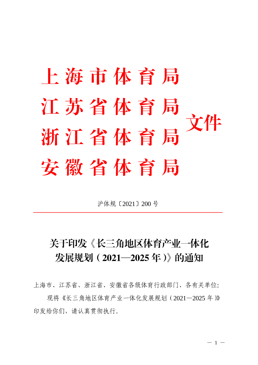 長三角地區(qū)體育產(chǎn)業(yè)一體化發(fā)展規(guī)劃(2021—2025年)