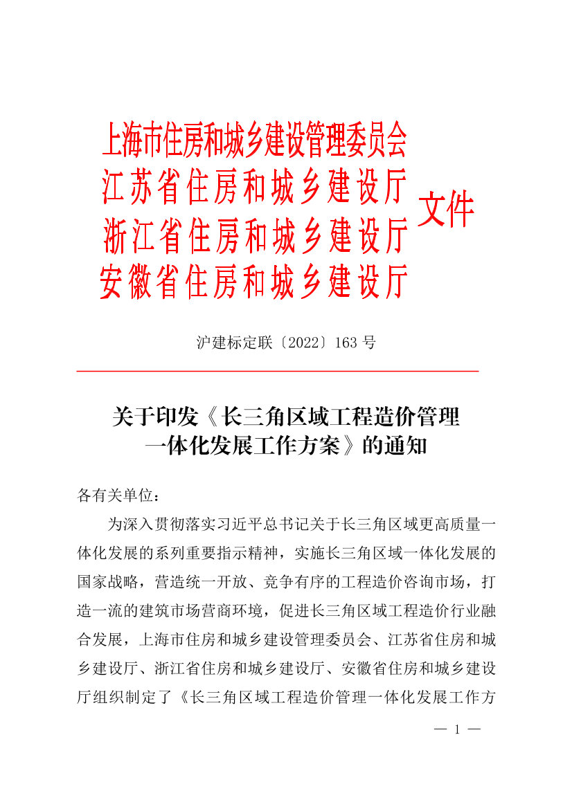 附件:1.長三角區(qū)域工程造價(jià)管理一體化發(fā)展工作方案
