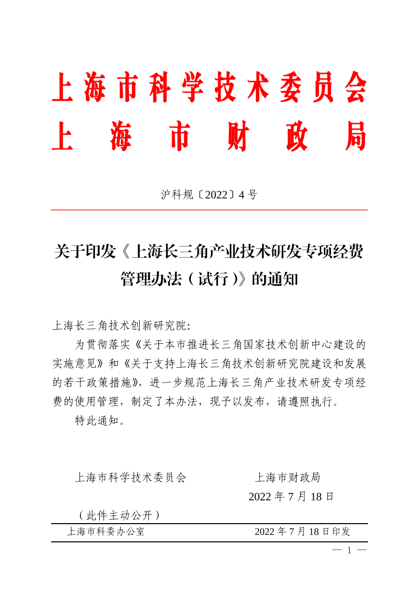 上海長(zhǎng)三角產(chǎn)業(yè)技術(shù)研發(fā)專(zhuān)項(xiàng)經(jīng)費(fèi)管理辦法(試行)