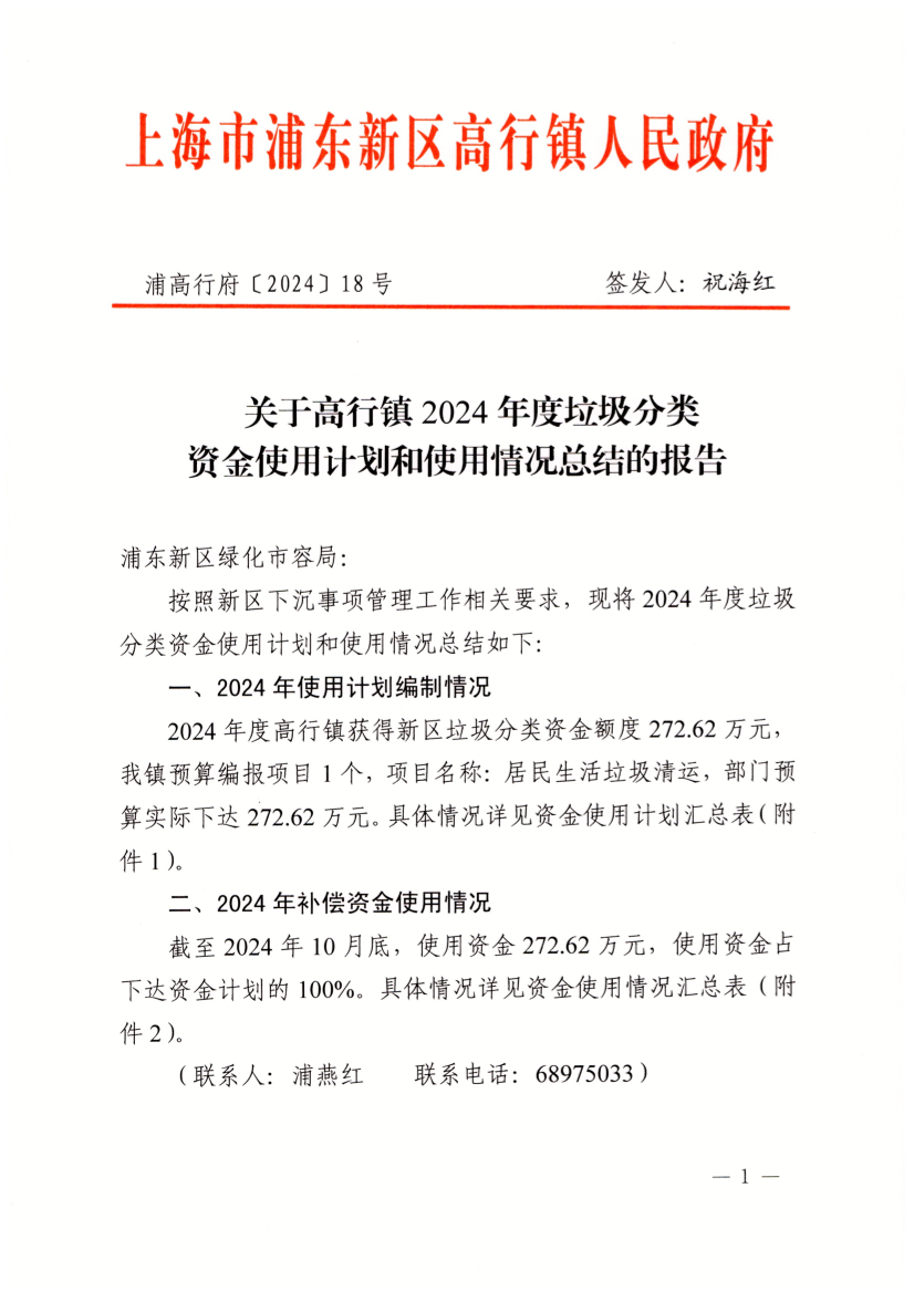 關(guān)于高行鎮(zhèn)2024年度垃圾分類(lèi)資金使用計(jì)劃和使用情況總結(jié)的報(bào)告
