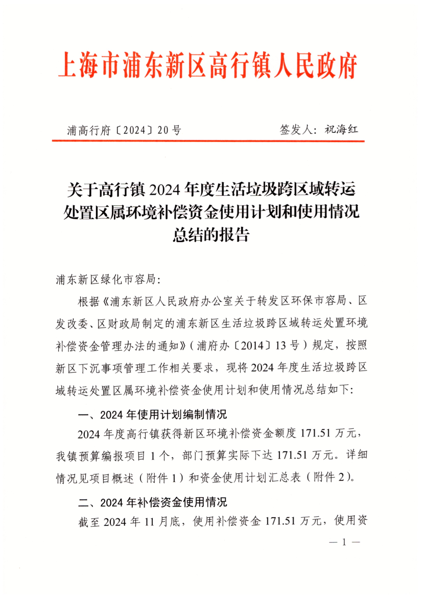 關(guān)于高行鎮(zhèn)2024年度生活垃圾跨區(qū)域轉(zhuǎn)運(yùn)處置區(qū)屬環(huán)境補(bǔ)償資金使用計(jì)劃和使用情況總結(jié)的報(bào)告
