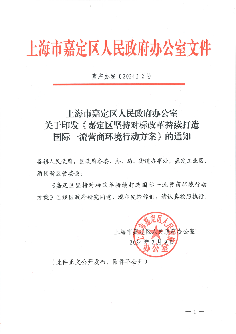??《嘉定區(qū)堅(jiān)持對(duì)標(biāo)改革持續(xù)打造國(guó)際一流營(yíng)商環(huán)境行動(dòng)方案》已經(jīng)區(qū)政府研究同意,現(xiàn)印發(fā)給你們,請(qǐng)認(rèn)真按照?qǐng)?zhí)行。