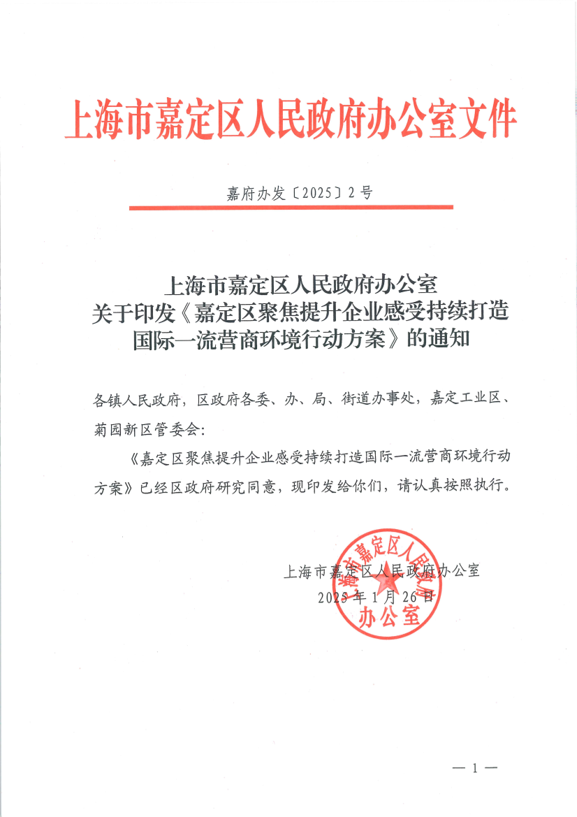 ??《嘉定區(qū)聚焦提升企業(yè)感受持續(xù)打造國際一流營商環(huán)境行動方案》已經(jīng)區(qū)政府研究同意,現(xiàn)印發(fā)給你們,請認(rèn)真按照執(zhí)行。